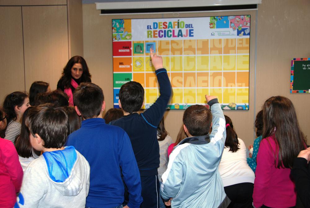 El aula se acondicionó, por un lado, con vitrinas expositoras, donde se pueden observar objetos reales (tanto ejemplos de qué residuos se echan en cada contenedor como de objetos reciclados obtenidos a partir de los materiales clasificados). Por otro lado se elaboraron juegos y paneles explicativos (con la peculiaridad de que fueran enrollables, para recogerlos cuando el aula se destina a otros usos).