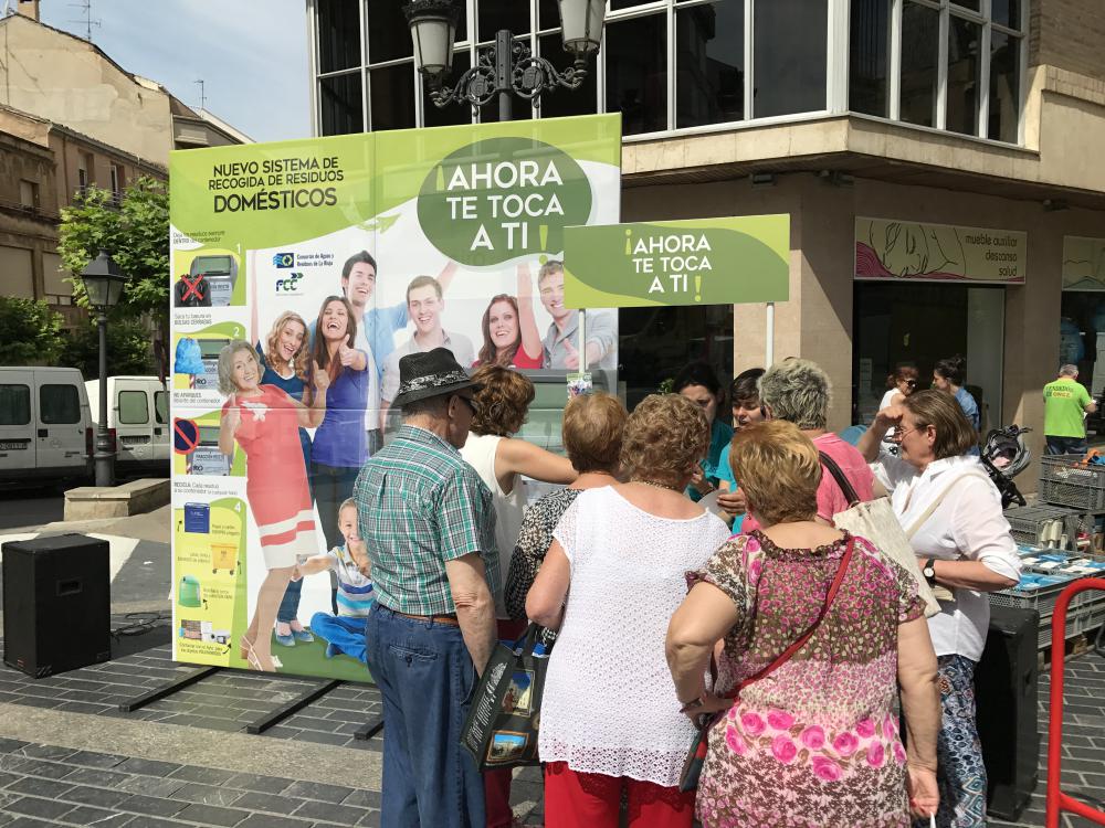 Durante la campaña se instaló un stand (compuesto por un mostrador con cartela y un photocall) en las zonas céntricas o mercadillos, atendido por dos educadores ambientales, que animaron a los transeúntes a hacerse una divertida foto. Se les regaló la foto, impresa en el momento con una impresora bluetooth portátil, y se les tomó los datos para participar en el sorteo de un premio (un fin de semana en un balneario riojano para dos personas). Lógicamente se aprovechó para explicar lo necesaria que es la colaboración ciudadana tanto para la limpieza urbana como para la recogida selectiva, entregando una octavilla o flyer informativo.