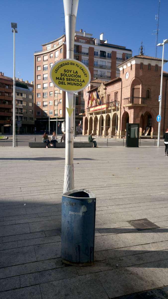 Carteles sobre farolas: se instalaron unos carteles llamativos sobre varias papeleras por toda la ciudad con el fin de instar a los viandantes a utilizar las papeleras