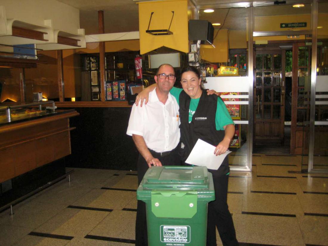 - Una en la que se llevaron a cabo encuestas personalizadas a todos los establecimientos para conocer de primera mano los hábitos de reciclado de vidrio y adecuar los recursos a sus necesidades. Estas visitas tuvieron también una misión informativa, animando a la colaboración de todos los establecimientos e insistiendo en la importancia del uso correcto de los contenedores en los que únicamente deben depositarse botellas, tarros y frascos de vidrio; nunca platos, vasos, copas, porcelana, cerámica o loza. Además, se informó de los beneficios medioambientales, sociales y económicos de este proceso.