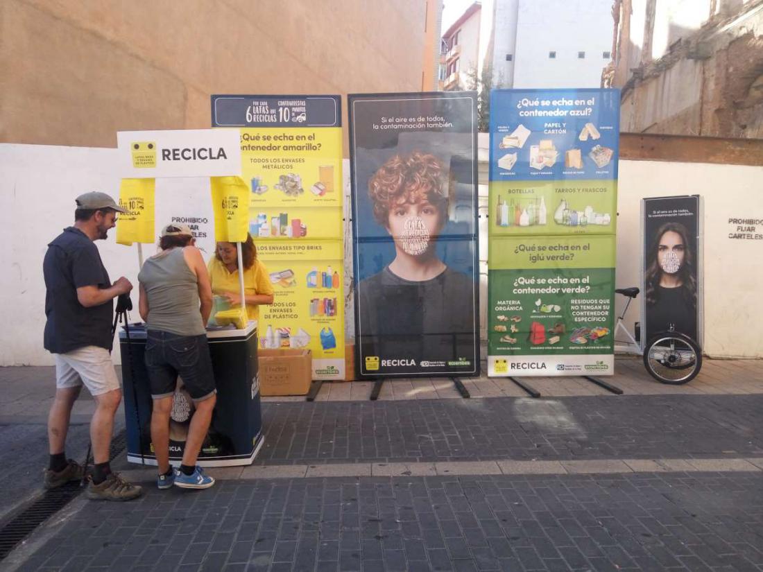 Esta temporada hemos continuado trabajando junto al Consorcio de Aguas y Residuos de La Rioja dentro de las actividades de concienciación sobre recogida selectiva y reciclaje de envases ligeros de origen doméstico que desarrollan anualmente. Dando continuidad a la labor de concienciación y formación para la disminución de impropios hemos llevado a cabo una campaña en la calle, recuperando algunos formatos que han dado buenos frutos en campañas recientes por su espectacularidad y claridad en los mensajes.
