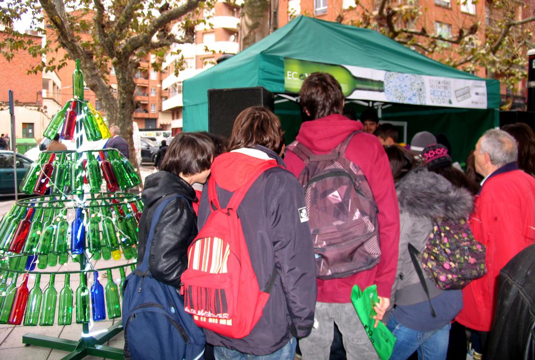 Un original árbol de navidad fabricado con botellas de vidrio e iluminado recorrió varias localidades para recordarles a los ciudadanos la importancia de reciclar el vidrio que generamos en nuestros hogares, especialmente en Navidad, cuando la producción se dispara.