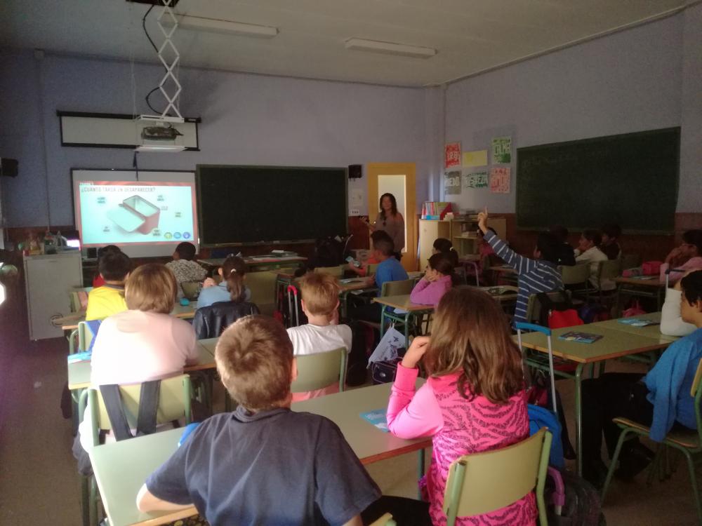 En esta ocasión, como material promocional se ha entregado a todos los alumnos un sacapuntas con forma de contenedor amarillo con la imagen de la campaña serigrafiada.