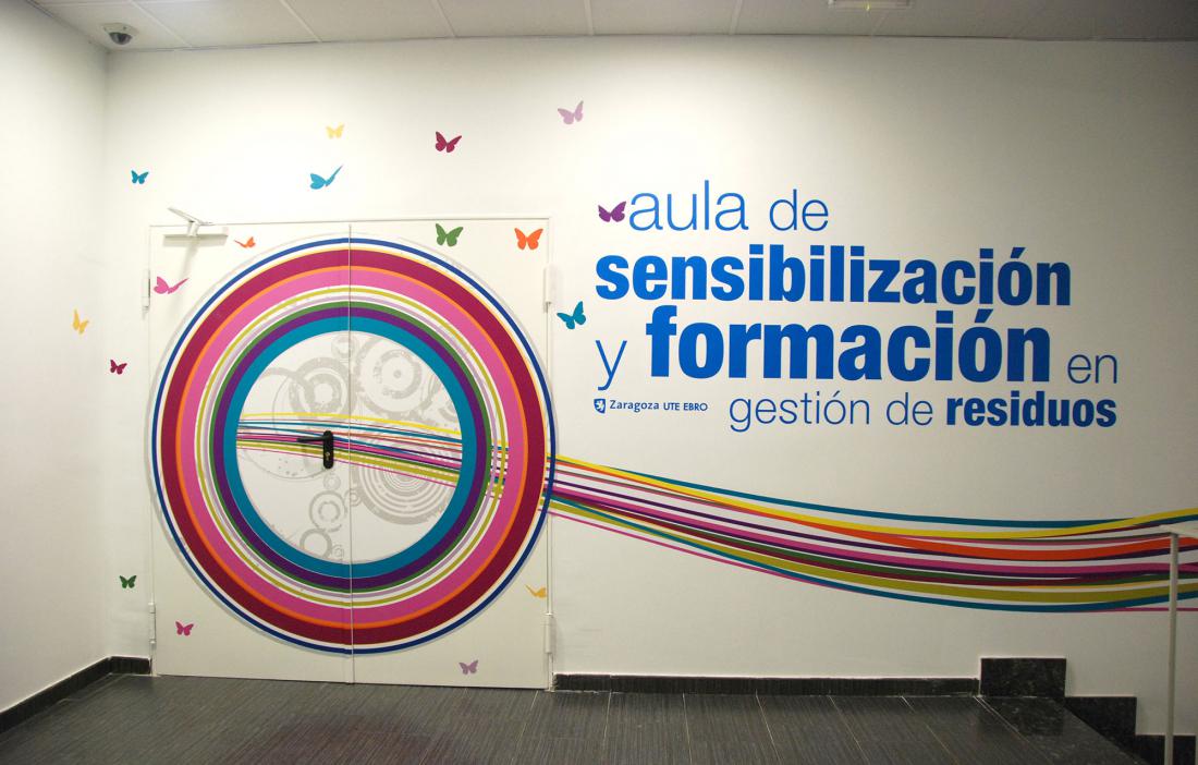 El Complejo de Tratamiento de Residuos Urbanos de Zaragoza contaba con un amplio espacio distribuido en distintas estancias contiguas, destinado a albergar una única aula medioambiental de gran tamaño que sirviera de referente para dar a conocer las instalaciones a los aragoneses y desarrollar labores educativas, formativas y de concienciación relativas a la recogida selectiva y al reciclaje de los residuos.